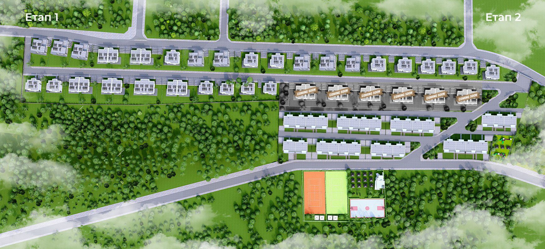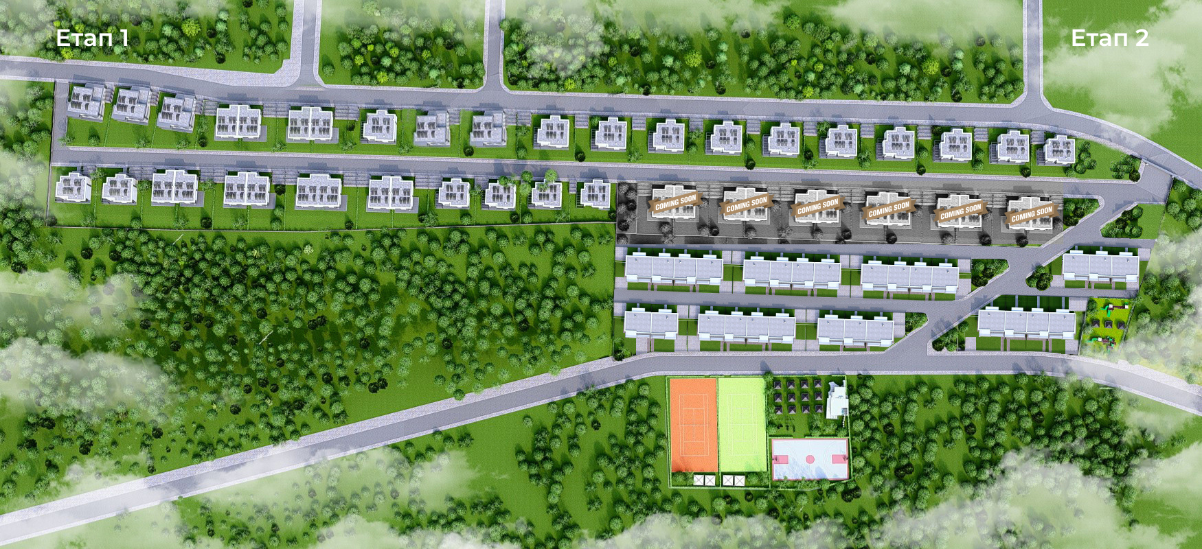 Проектът се състои от 65 кокетни модерни къщи със самостоятелен двор, потънали в зеленина и заобиколени от внимателно планирани общи пространства, които отговарят на най-високите съвременни изисквания. Обособени са разнообразни зони за отдих, игри и спорт за всички възрасти, които гарантират забавление за малчуганите, без да нарушават спокойствието на живущите. Обитателите му разполагат с две детски площадки, игрища за тенис и футбол, зони за разходка и пикник, ресторант и облагородени общи пространства. Зеленината и удобствата на комплекса осигуряват спокоен живот в близост до природата и безопасна среда за децата.
